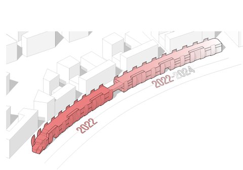 Entlang des Landstraßer Gürtels, ein Teil des Haupterschließungsrings in Wien, soll eine 300 Meter lange flexible und gemischte Gewerbe- und Bürozone entstehen.