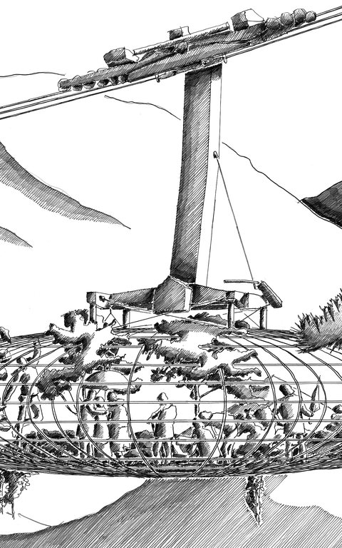 Inwieweit kann eine Gondel neu gedacht werden – kann der Innenraum als erweiterter Außenraum wahrgenommen werden und über die Notwendigkeit an sich hinaus gehen. Der Aufenthalt in der Gondel wird nicht mehr temporär, sondern stationär. Mehrwertraum als attraktiver Wohnraum im städtischen Gefüge.